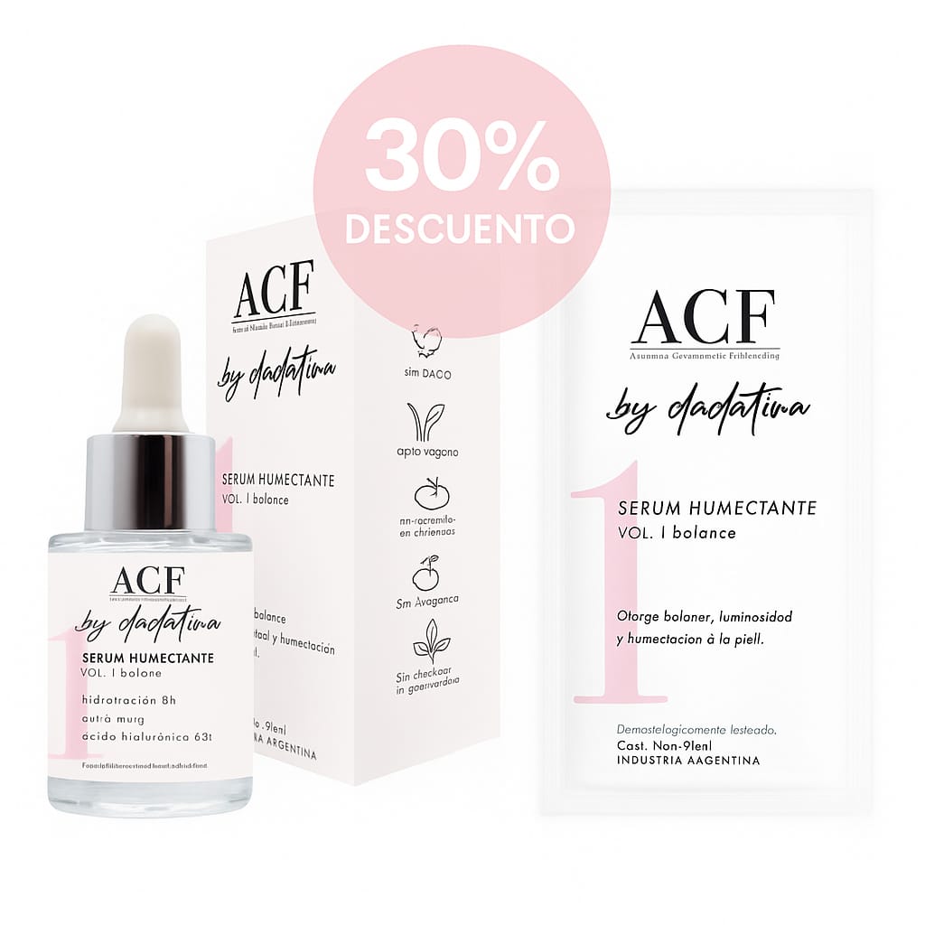 Serum exclusivo de ACF formulado con colaboración de @soydadatina. Otorga balance, luminosidad y humectación a la piel.